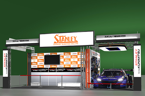 オートサロンのスタンレーブースには、2018年シリーズチャンピオンを獲得した「RAYBRIG NSX-GT」を当社製ピット用オーバーヘッド照明の新しい光が懐かしの「RAYBRIGブルー」のマシンを包み込みます。