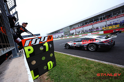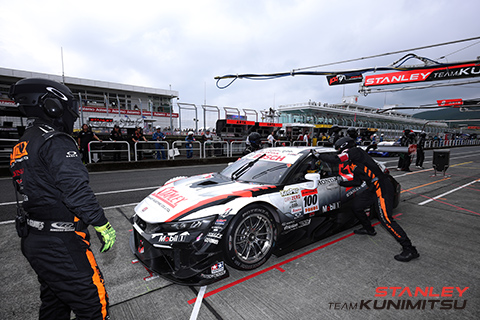 No.100 STANLEY CIVIC TYPE R-GTでは、引き続き牧野選手が第3スティントを担当。迅速な作業で送り出され、コース復帰後は2度のピット作業を終えた車両のなかでトップに浮上。理想的な形でレース終盤を迎えることになる。