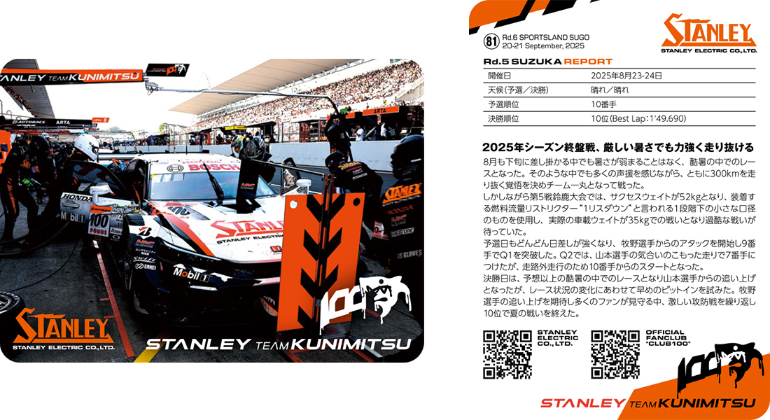 - 第5戦鈴鹿大会「STANLEY TEAM KUNIMITSU 2025 OFFICIAL GOODS」 販売のご案内